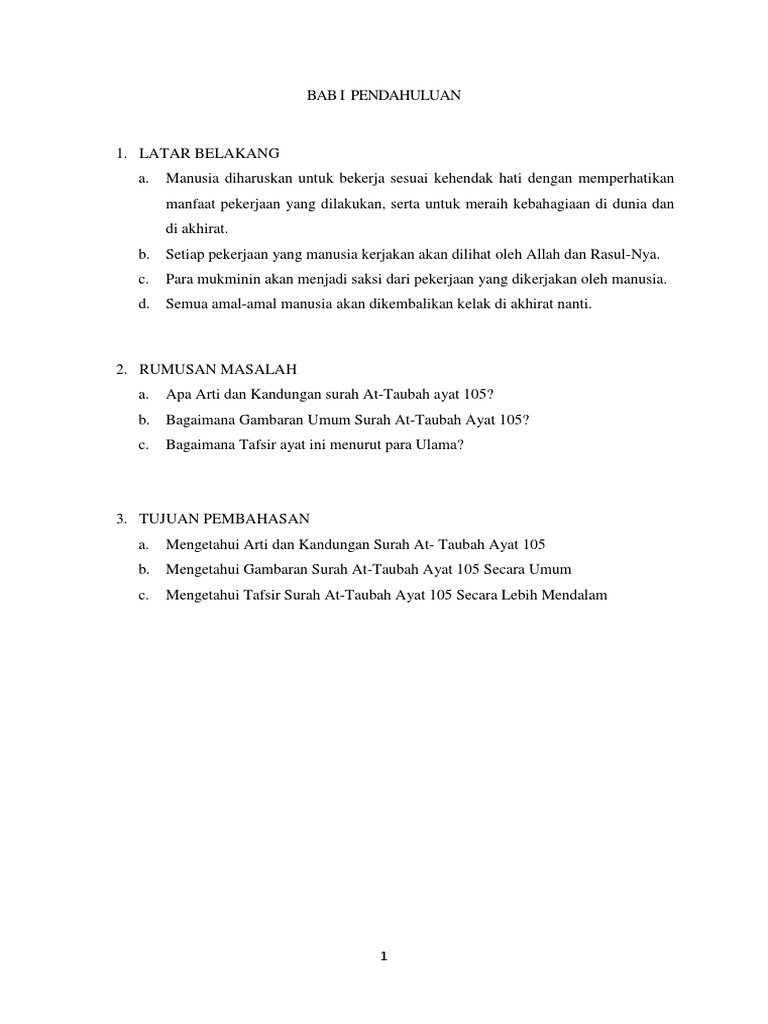 Arti Perkata Surat At-Taubah Ayat 105 Beserta Terjemah Bahasa Indonesia dan Inggris Lengkap Dengan Tafsirnya. Al-Quran Surat At-Taubah. Pada penelitian ini peneliti meneliti ayat ke 105 dari.