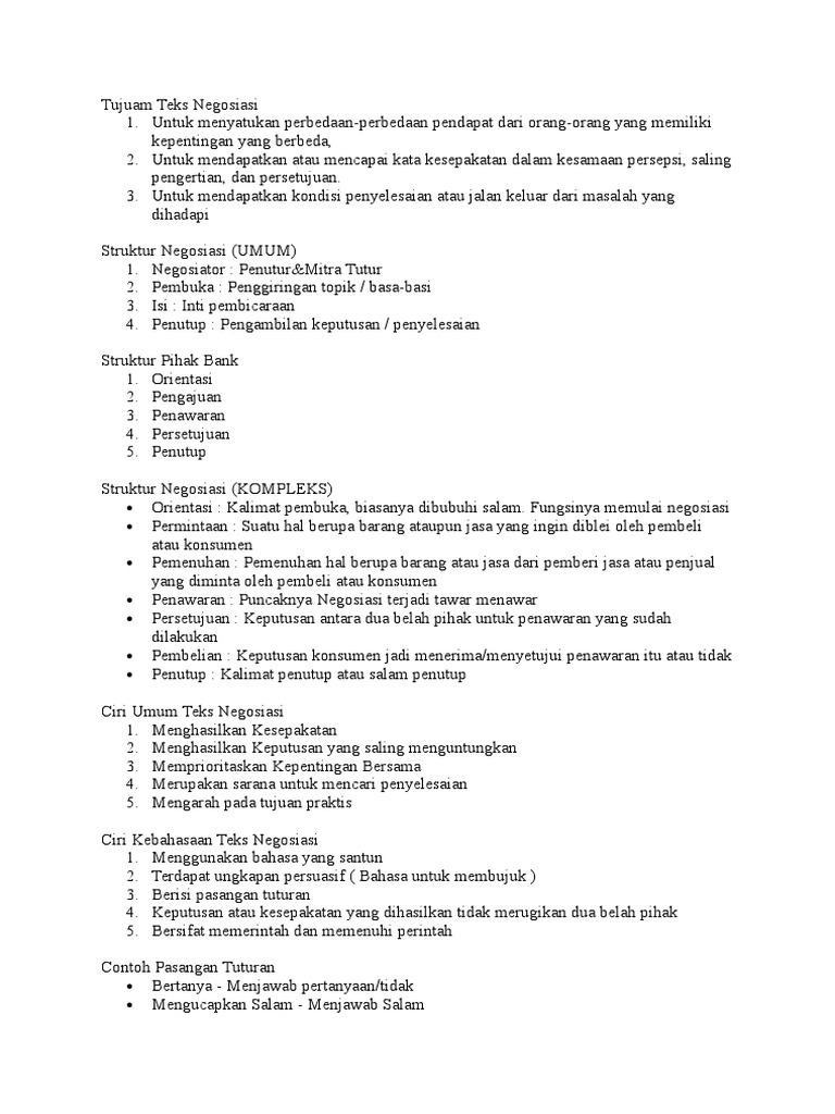 Artikel ini berisi 17 lebih contoh teks negosiasi lengkap beserta strukturnya. Hasil akhir negosiasi harus mempunyai persetujuan dari semua pihak sehingga semua pihak menerima hasil akhir dengan. Dibawah ini adalah contoh teks negosiasi dari 3 orang siswa yang sedang memutuskan lokasi pengerjaan tugas kelompok.
